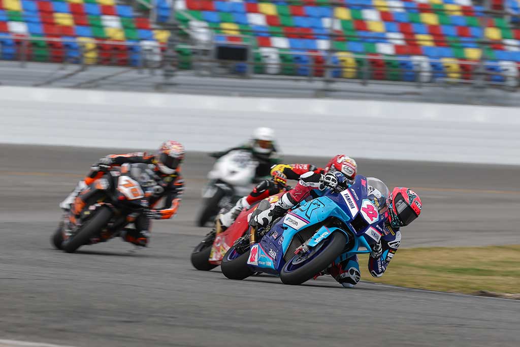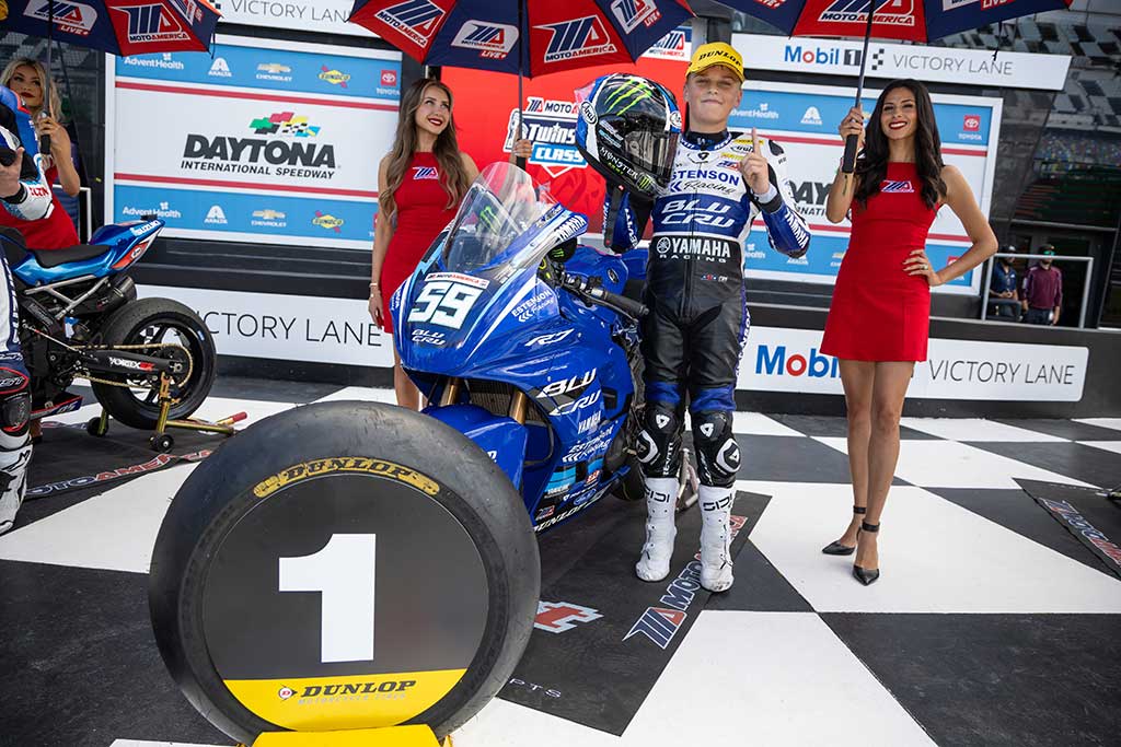 If you love racing, making the trip to Daytona International Speedway is on the list. If you’re a racer, winning at Daytona International Speedway is a career highlight. In just his first outing at the iconic venue, Yamaha BLU CRU Estenson Racing’s Sam Drane checked that off the list, scoring the MotoAmerica Twins Cup win in Race 2.